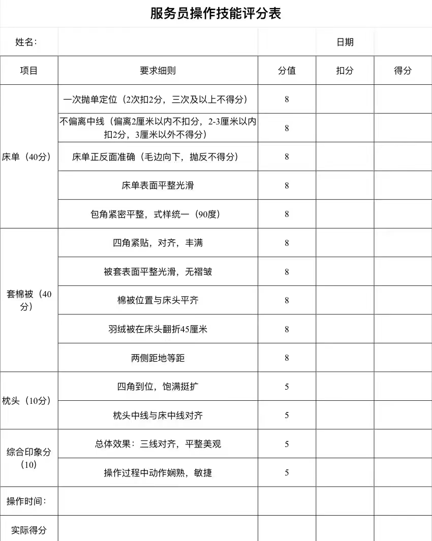 客房实操技能大比拼结果