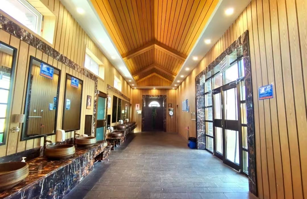为进一步推进“全国旅游厕所建设管理新三年行动计划”实施,改善辉腾锡勒黄花沟草原旅游区公共卫生服务环境,切实解决景区内各核心景点游客如厕难的问题,大力提升公共卫生水平,景区推进“厕所革命”,让“方便”更方便。“风景美,如厕难”,这是许多游客对景区公厕的吐槽,两者的鲜明对比,一方面是源于厕所文明的缺失,另一方面是资源整合的协调问题。2022年,景区扎实推进“厕所革命”工作,坚持“以人为本”的发展和建设思想,坚持以自然和人文色调为主的装修理念,建设了实用、美观、整洁的景区水冲公厕,位置分别为黄花沟南游客中心停车场西北角与北游客中心西南角两处公厕。在基准设施的基础上,增设母婴、残障人士专用卫生间及儿童洗手台,提供置物小隔板、挂钩、干手机、手纸、洗手液等用品,增加了通风及除臭设施设备,同时匹配专业保洁进行清洁管理。